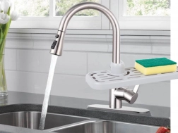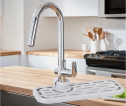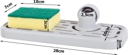 This flexible sink organizer with a shelf for the faucet helps you keep order in the kitchen. It's ideal for storing sponges and dishwashing supplies with efficient water drainage.