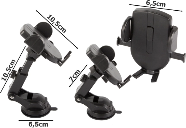 The car phone holder is designed to provide safe and comfortable use of your mobile device while driving. It can be simply mounted on the vehicle's windshield or dashboard, and thanks to the adjustable arm system, the holder is suitable for most phones and GPS devices.