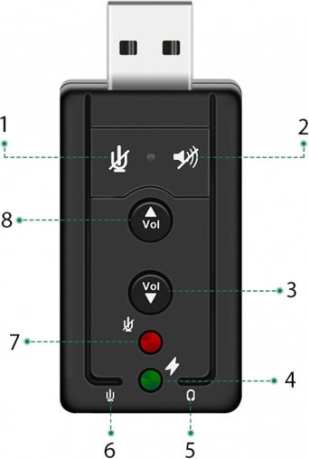 Support for 3D Surround and 7.1 simulation enhances spatial immersion in games, movies, and music. The adapter features volume controls, microphone mute, and audio mute with LED status indicators, so you can manage everything with a single press.