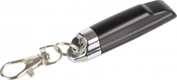 Le couvercle coulissant empêche les pressions involontaires. Clip métallique et corps résistant pour une longue durée de vie au trousseau.