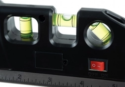 Le niveau dispose d'un mètre déroulant intégré de 250 cm avec une graduation double en centimètres/mm et en pieds/pouces.
