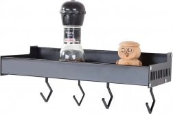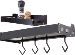 Élégante et résistante, cette étagère murale en aluminium noir thermolaqué apporte ordre et style à votre intérieur. Parfaite pour la cuisine, la salle de bain et l’entrée. Grâce au rebord surélevé et à ses quatre crochets amovibles, elle maintient en sécurité épices, cosmétiques et ustensiles. Construction robuste, montage mural facile et design universel en font une solution pratique pour l’organisation du quotidien.