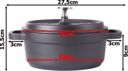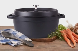 Faitout pratique d’un volume de 2,2 l, en fonte d’aluminium robuste avec revêtement antiadhésif pour une cuisson et une rôtisserie faciles. Compatible avec tous les types de plaques, y compris l’induction, ainsi que au four. Offre une montée en température rapide, une répartition homogène de la chaleur et des poignées ergonomiques sécurisées.