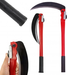 Faux manuelle pliante avec serpe, pratique pour le jardin et le terrain. Elle offre une lame en acier de haute qualité, une poignée ergonomique gainée de caoutchouc et un verrou de sécurité de la lame pour une utilisation confortable et sûre. Grâce à sa structure pliante, elle se range et se transporte facilement.