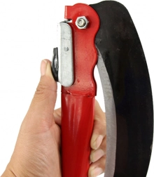 Grâce à sa structure pliante, l’outil se replie et se range facilement dans un petit espace – idéal pour le jardin, le chalet, le camping et les usages d’urgence. Le verrou de sécurité maintient la lame en position correcte pendant le travail et le transport.
