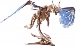 Les pièces en contreplaqué découpées au laser s’emboîtent avec précision et forment un modèle de dragon réaliste aux ailes bleues saisissantes, prêt à briller sur son socle comme en action.