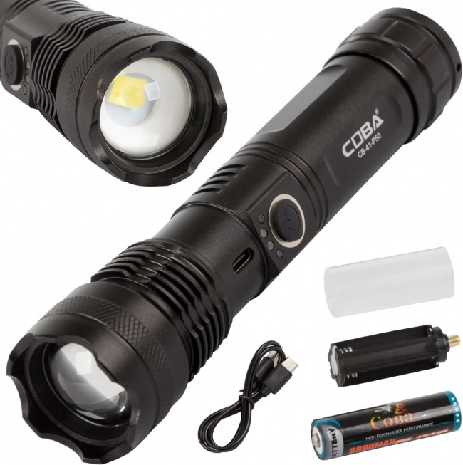 Lampe tactique militaire Coba avec chargement USB et zoom