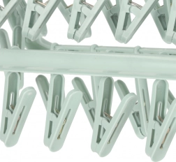 Les pinces sont équipées d'un mécanisme métallique qui assure fermeté et empêche le glissement des vêtements. La structure pliable facilite son rangement et permet de l'emporter en voyage ou en camping.
