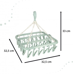 Le séchoir en plastique universel est un accessoire indispensable pour chaque foyer. Il comprend 32 pinces permettant de sécher une grande quantité de petit linge. Sa construction compacte permet un accrochage dans la salle de bain, sur le balcon ou sur un grand séchoir en position debout, aidant ainsi à économiser de l'espace.