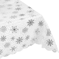 Nappe de Noël blanche avec flocons de neige 180 x 140 cm