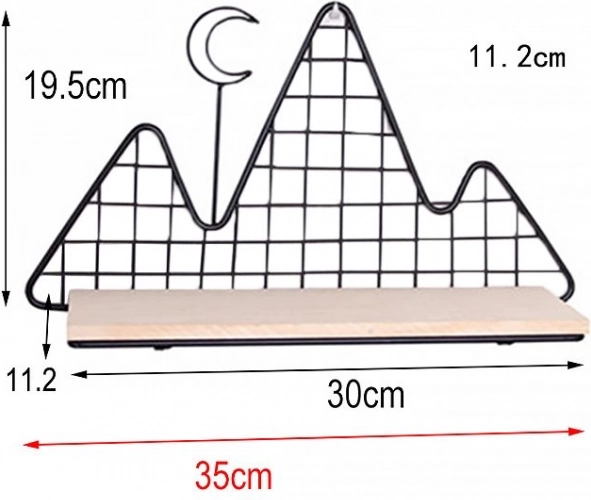Étagère murale décorative noire – motif montagne