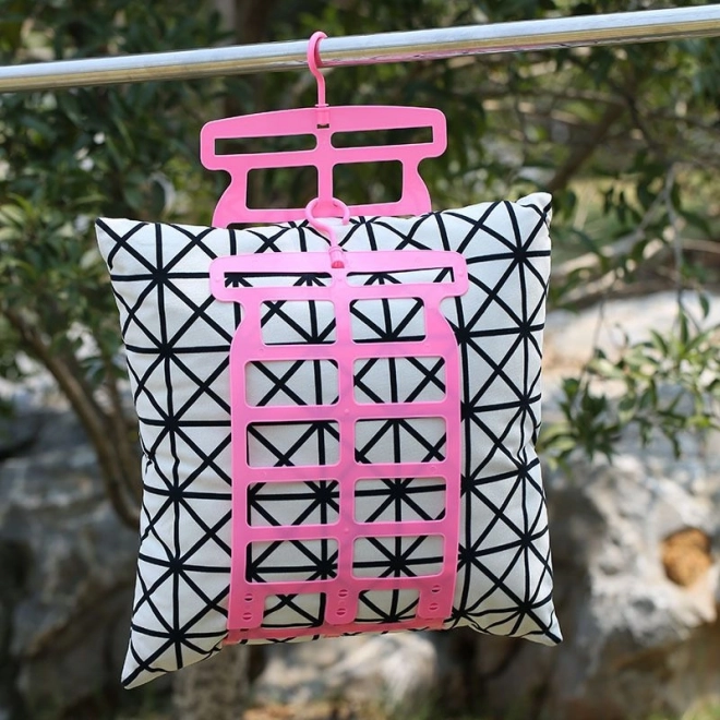 Le cintre multifonction est un accessoire pratique conçu pour sécher et aérer les oreillers, les peluches, les sous-vêtements et d’autres accessoires domestiques inhabituels et difficiles à suspendre.