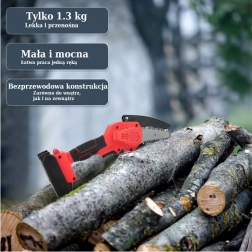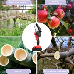 Tronçonneuse puissante avec batterie rechargeable pour une utilisation rapide et facile. Idéale pour l’élagage des arbres, des branches, des arbustes et pour les travaux de jardinage courants. La mini tronçonneuse permet une utilisation à tout moment et dans toutes les conditions. La scie est équipée d’une chaîne de qualité supérieure, capable de coupes rapides. La tronçonneuse peut être maniée librement d’une seule main, ce qui offre une totale liberté de mouvement et permet de travailler confortablement et efficacement.
