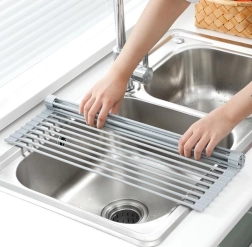 Pratique et très fonctionnel tapis d'égouttage enroulable, qui peut être placé sur l'évier pour économiser de l'espace. Facile à enrouler et à ranger lorsqu'il n'est pas nécessaire.