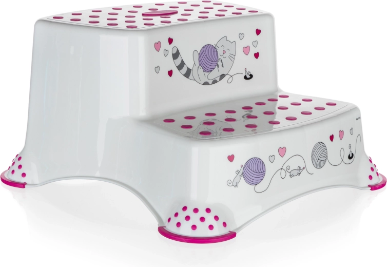 Offrez aux enfants plus d’autonomie dans la salle de bain et à la maison. Ce marchepied double au motif ludique de chat propose deux niveaux confortables pour monter facilement et en sécurité. Les pastilles antidérapantes sur les marches et les patins assurent un pas sûr et une bonne stabilité sur diverses surfaces.