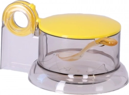 Le récipient transparent permet de vérifier la quantité ; le couvercle protège le contenu contre les impuretés et l’humidité. Toujours prêt à servir.