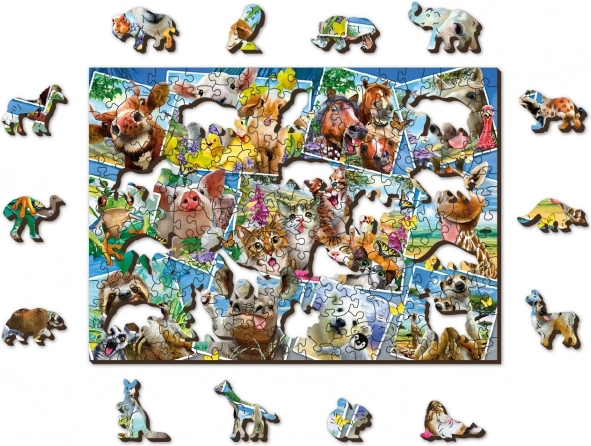 Puzzle en bois 2-en-1 Carte postale des animaux WOODEN CITY, 505 pièces