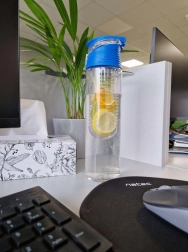 Reste hydraté avec style. Grâce au panier à fruits intégré, ajoute simplement des tranches de citron, des fraises ou des herbes et crée une délicieuse eau fruitée sans sucre. Le volume de 800 ml assure une quantité suffisante de liquide pour une demi-journée, ce qui rend la bouteille idéale en voyage comme au bureau.