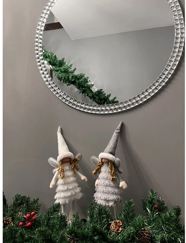 Charmante fée textile aux ailes scintillantes et tenue hivernale qui illumine chaque intérieur. Grâce à ses petites bottes stables, elle tient debout seule, scintille délicatement et se place sur une commode, un rebord de fenêtre ou près de la cheminée. La palette gris-blanc neutre s’harmonise parfaitement avec une décoration de Noël moderne ou traditionnelle.