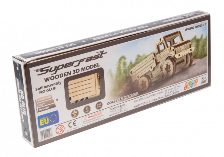 Le puzzle 3D en bois WOODEN CITY Superfast camion-benne est un choix idéal pour les amateurs de maquettes, de bricolage et de mécanique. L’assemblage est simple et prend environ 1 heure. Les pièces en contreplaqué de qualité s’emboîtent précisément et tiennent sans colle. Le résultat est un modèle mécanique fonctionnel au fonctionnement fluide et au look détaillé.