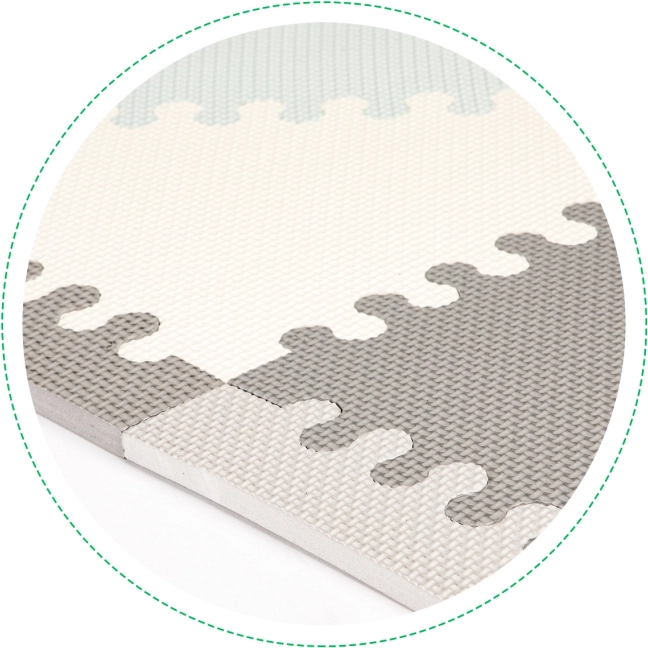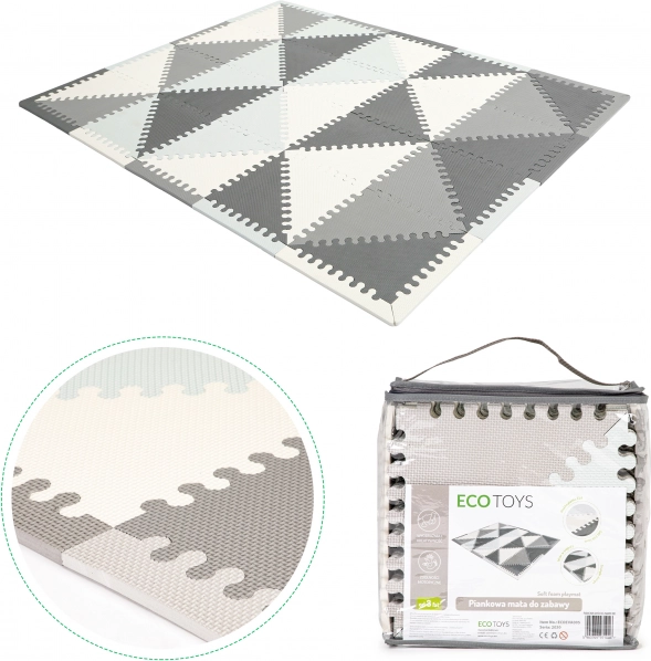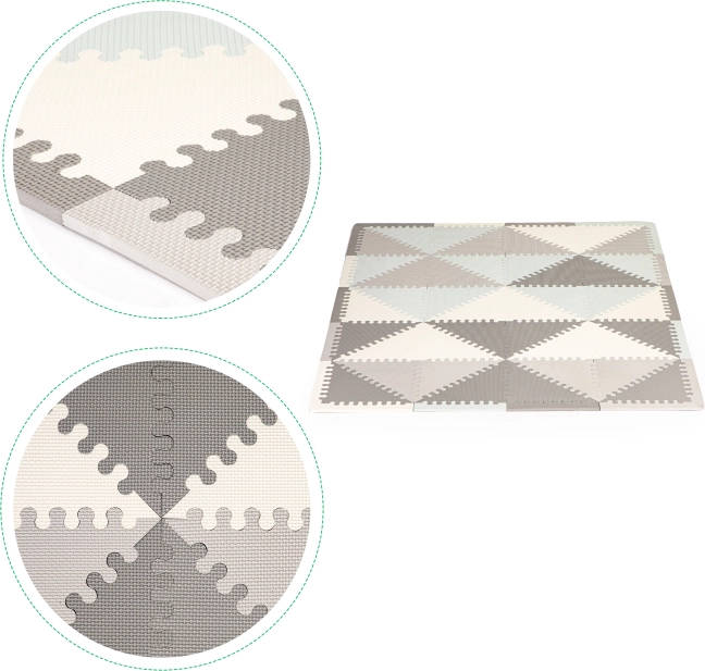 Les pièces triangulaires mates avec "dents" permettent de modifier la forme du tapis à tout moment. Épaisseur de 0,9 cm offre une protection parfaite contre les chutes et une douceur agréable lors de l'utilisation.