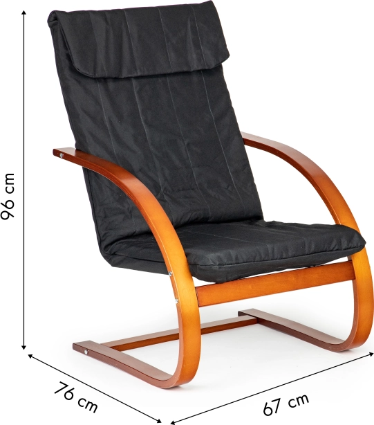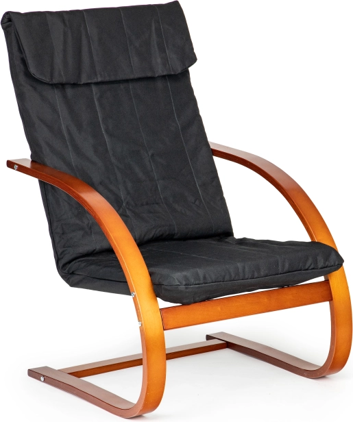 Profitez de moments de détente dans un fauteuil qui associe design moderne et ergonomie. Le mécanisme de bascule apaise et soulage le dos, tandis que le rembourrage moelleux à garnissage en mousse garantit le confort pour la lecture, la relaxation ou regarder la télévision. Le contraste entre le tissu noir et le bois de noyer souligne le caractère de chaque intérieur.