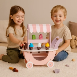 Adorable chariot de glace en bois ECOTOYS qui transforme chaque chambre d’enfant en petite boutique. Les enfants s’essaient au rôle de vendeur, stimulent leur imagination et leur motricité fine tout en jouant avec un ensemble de 12 pièces en bois sûr aux couleurs pastel. Les boules et la cuillère magnétiques rendent le jeu encore plus amusant et la structure stable sans bords tranchants garantit la sécurité des enfants dès 3 ans.