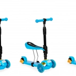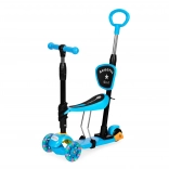 La trottinette est équipée d'une poignée réglable pour les parents, idéale pour les promenades avec les plus jeunes. Grâce aux roues LED, la conduite reste amusante même dans l'obscurité, et la plateforme antidérapante spéciale améliore la stabilité et la sécurité.