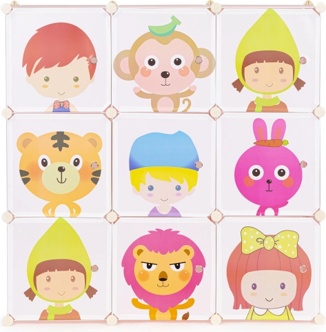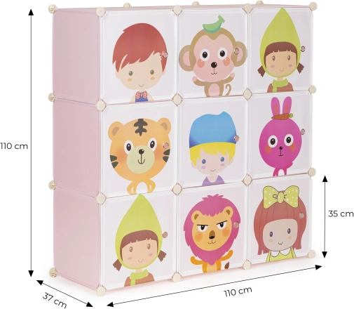 Chacune des 9 étagères supporte jusqu’à 3 kg, ce qui permet d’y placer facilement des livres, des peluches ou des blocs de construction. L’accès facile aux objets rangés permet aux enfants de maintenir l’ordre eux-mêmes.