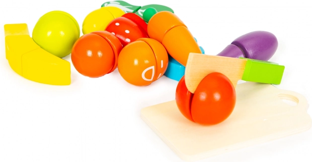 Le couteau en bois sûr et les moitiés à assembler favorisent la motricité fine, une bonne prise en main et la coordination œil-main. Idéal pour les enfants à partir de 3 ans.