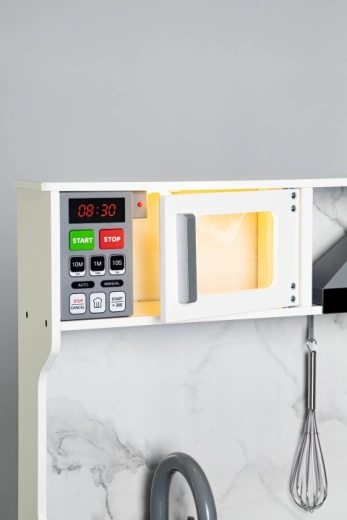 Inclut un four à micro-ondes avec éclairage et effets sonores et une hotte aspirante qui imite un vrai ventilateur de cuisine.