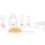 À la coiffeuse s'ajoutent des accessoires de jeu tels qu'un jouet sèche-cheveux, une brosse en bois et un petit miroir. Tous les accessoires ont des bords lisses, assurant la sécurité des enfants.