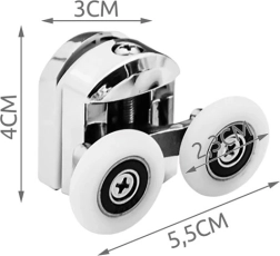 L’emballage contient 4 doubles galets supérieurs et 4 doubles galets inférieurs + 8 butées. Convient aux profils droits et semi-circulaires et à divers types de cabines.