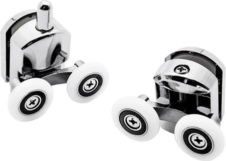 Ce kit universel de galets pour cabines de douche assure un déroulement fluide, une fermeture fiable et une usure réduite du rail. Les doubles galets à roulements à billes augmentent la stabilité du panneau de verre et limitent son inclinaison. Grâce à la conception basculante, les galets s’adaptent à la forme du profil – conviennent aux cabines carrées et semi-circulaires.
