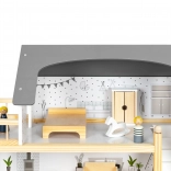 Chaque pièce a été aménagée dans un style différent correspondant au caractère et à la fonction de la pièce. Rien n’empêche toutefois votre enfant de jouer au décorateur d’intérieur et d’agencer l’espace à sa guise. L’ensemble comprend également un set de 19 éléments de meubles en bois, qui peuvent être librement retirés et réagencés sans aucune limitation.