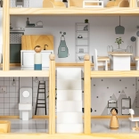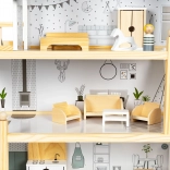 Avec la maison, vous recevez 4 poupées et 19 pièces de mobilier en bois pour décorer les différentes pièces de la maison, rendant le jeu encore plus captivant.