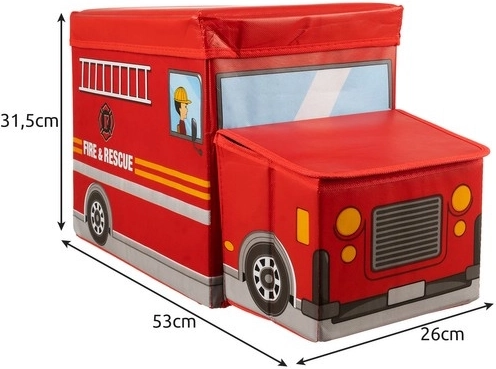 Faites du rangement une aventure ludique avec la boîte à jouets au look Fire & Rescue. Grâce à ses dimensions 53 × 26 × 31,5 cm, elle accueille peluches, briques, petites voitures et fournitures créatives. Le couvercle cache en toute sécurité les trésors des enfants et aide à garder la chambre impeccablement rangée.
