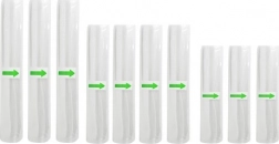 Prête à l’emploi immédiatement: 9 rouleaux de film, 5 grands sachets, un tuyau d’aspiration, un bouchon pour bouteilles et un coupe-film pratique.