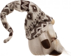 Le lutin avec un chapeau à motifs tricotés et une fausse fourrure offre un look rustique chaleureux idéal pour la décoration festive.