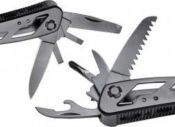 Il contient de nombreux outils utiles, tels que des pinces combinées, un burin, un ouvre-boîte, divers types de tournevis, une lime, des couteaux et plus encore. Avec ce multitool, chaque tâche sera parfaitement accomplie, que vous soyez à la maison, au travail ou dans la nature.