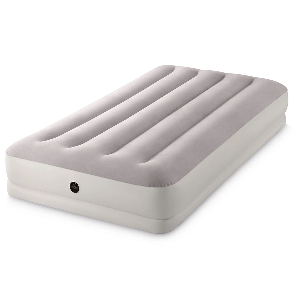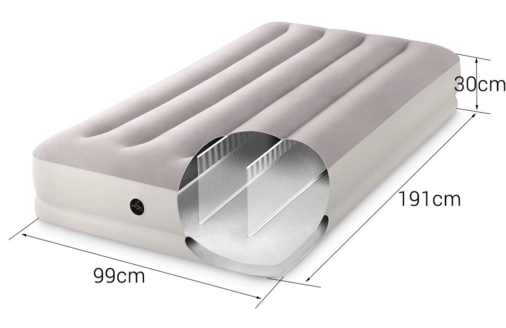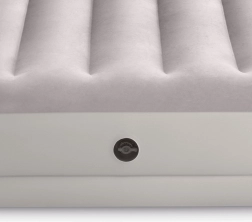 Le lit gonflable INTEX combine un matériau PVC robuste avec une surface floquée douce, agréable au toucher, pour améliorer le confort de sommeil. Sa structure surélevée avec chambres longitudinales et renforts internes assure une stabilité sans effet de balancement et un soutien fiable de la colonne vertébrale.