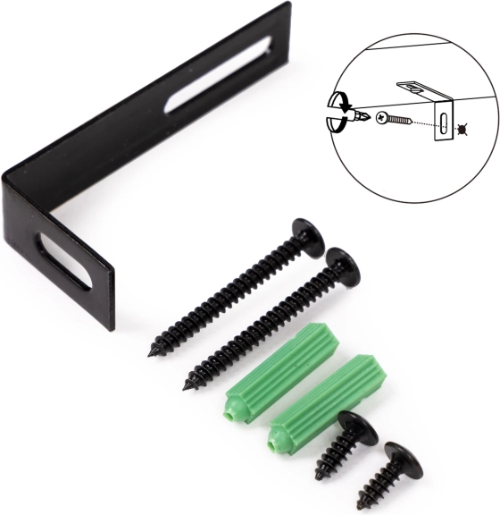 Le set comprend une équerre et des vis pour la fixation murale, offrant une stabilité et une sécurité accrues, surtout si vous avez de jeunes enfants. Vous pouvez donc compter sur cette étagère stylée en toute circonstance.