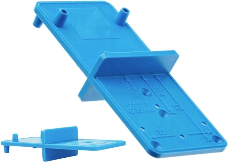 Gabarit universel et réversible pour le montage des charnières de meubles. Il permet un perçage précis des trous pour la quincaillerie, ce qui facilite leur vissage ultérieur. Il simplifie et accélère l’assemblage des meubles. L’entraxe des trous peut être transféré très facilement sur la pièce à usiner.