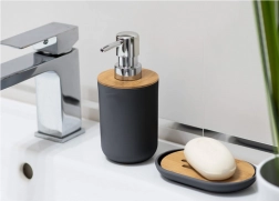 Ce set se distingue par une combinaison unique de couleur noire et de bambou naturel, apportant à votre salle de bain un look moderne et élégant.