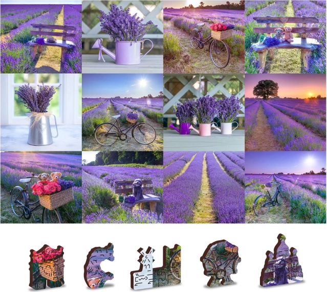Découvrez la magie du puzzle en bois au motif de champs de lavande, qui offre non seulement du divertissement, mais aussi un défi grâce à ses pièces aux formes uniques. Ce puzzle recto‑verso repousse les limites de l’assemblage classique.