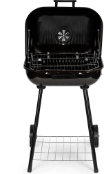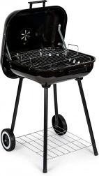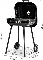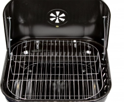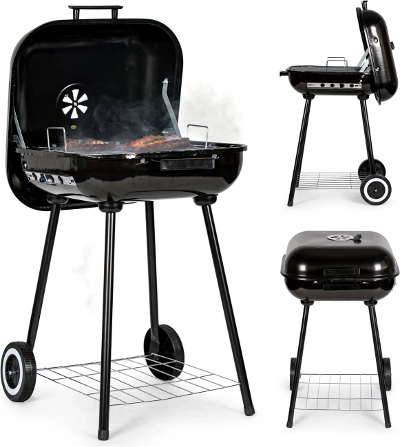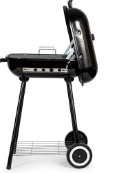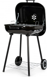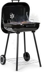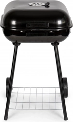 Grâce à sa poignée et ses roues, le barbecue est facilement manipulable même à des températures élevées. Sous la chambre de chauffe se trouve une étagère fonctionnelle qui permet de ranger du charbon de bois ou d'autres accessoires de barbecue. Les ouvertures de ventilation supplémentaires assurent une régulation correcte de la température et de la circulation de l'air.