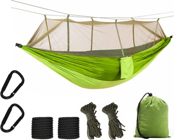 Hamac avec moustiquaire, 4× corde, mousquetons, housse/poche intégrée