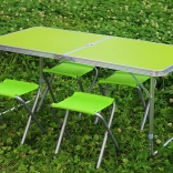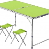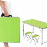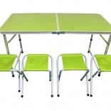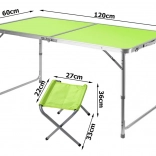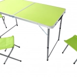 Ensemble de camping léger et pratique composé d’une table pliante et de quatre tabourets de couleur verte. Grâce à son format valise, à la hauteur réglable, à la structure en aluminium robuste et aux matériaux résistants, il est idéal pour le camping, les pique-niques, le jardin et la pêche. Rangement intégré des tabourets et trou pour parasol pour plus de confort à chaque sortie.