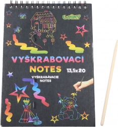 Le bloc à gratter est idéal pour les petits artistes qui souhaitent découvrir leurs capacités créatives. Chaque feuille recouverte d'une couche spéciale noire cache un fond coloré, qui apparaît lorsque la couche est enlevée avec le bâtonnêt en bois fourni.