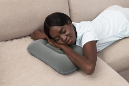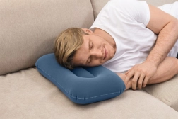 Ce coussin gonflable est léger et ne prend pratiquement pas de place une fois plié. Parfait pour voyager et camper.